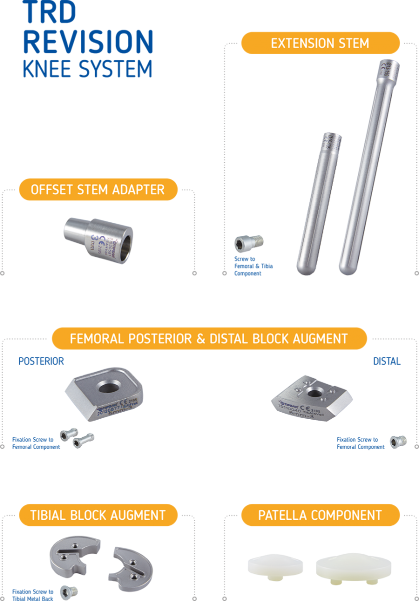 It has a wide range of products for bone losses and defective areas, including TRD Revision tibial block augmentation, TRD Revision femoral distal block augmentation and femoral posterior block augmentation.